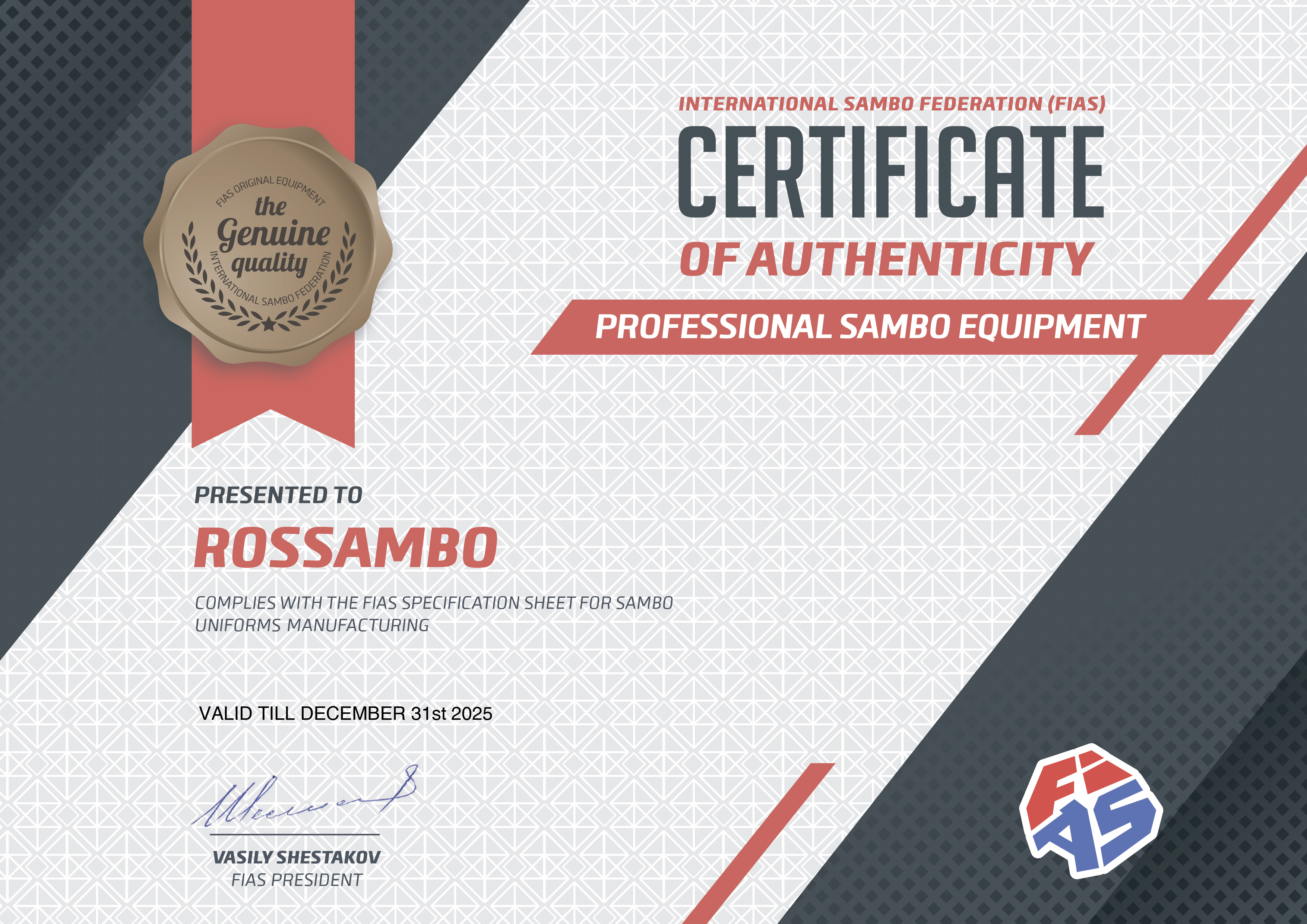 Fias official sambo uniforms suppliers